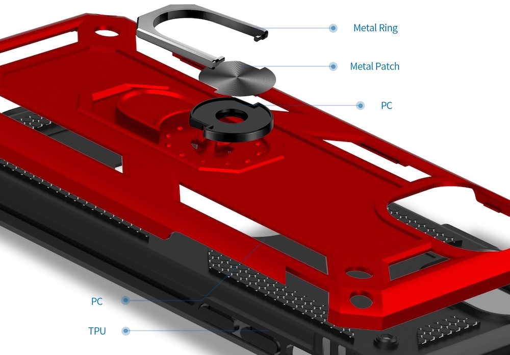 Obal na telefón, ktorý pozostáva z dvoch vrstiev a teda poskytuje vášmu telefónu maximálnu ochranu. Chráni telefón pred nárazom, poškriabaním a prachom. V zadnej časti je integrovaný držiak, ktorý zabraňuje vyšmyknutiu z ruky a zároveň je to aj stojan pri sledovaní fotiek alebo videa. Súčasťou je aj kovový krúžok pre uchytenie telefónu na magnetický držiak.