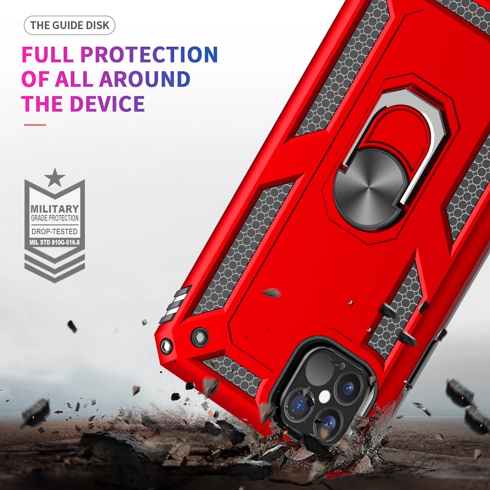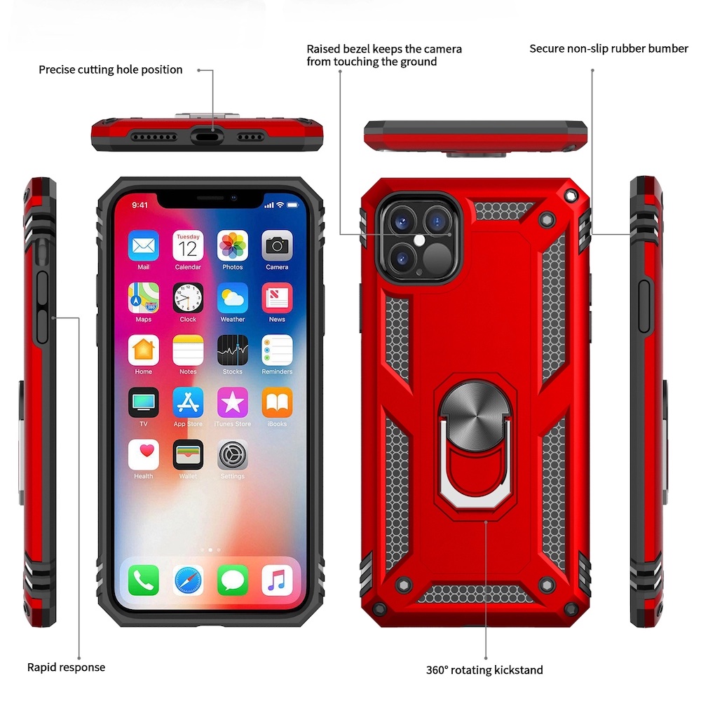 Obal na telefón, ktorý pozostáva z dvoch vrstiev a teda poskytuje vášmu telefónu maximálnu ochranu. Chráni telefón pred nárazom, poškriabaním a prachom. V zadnej časti je integrovaný držiak, ktorý zabraňuje vyšmyknutiu z ruky a zároveň je to aj stojan pri sledovaní fotiek alebo videa. Súčasťou je aj kovový krúžok pre uchytenie telefónu na magnetický držiak.