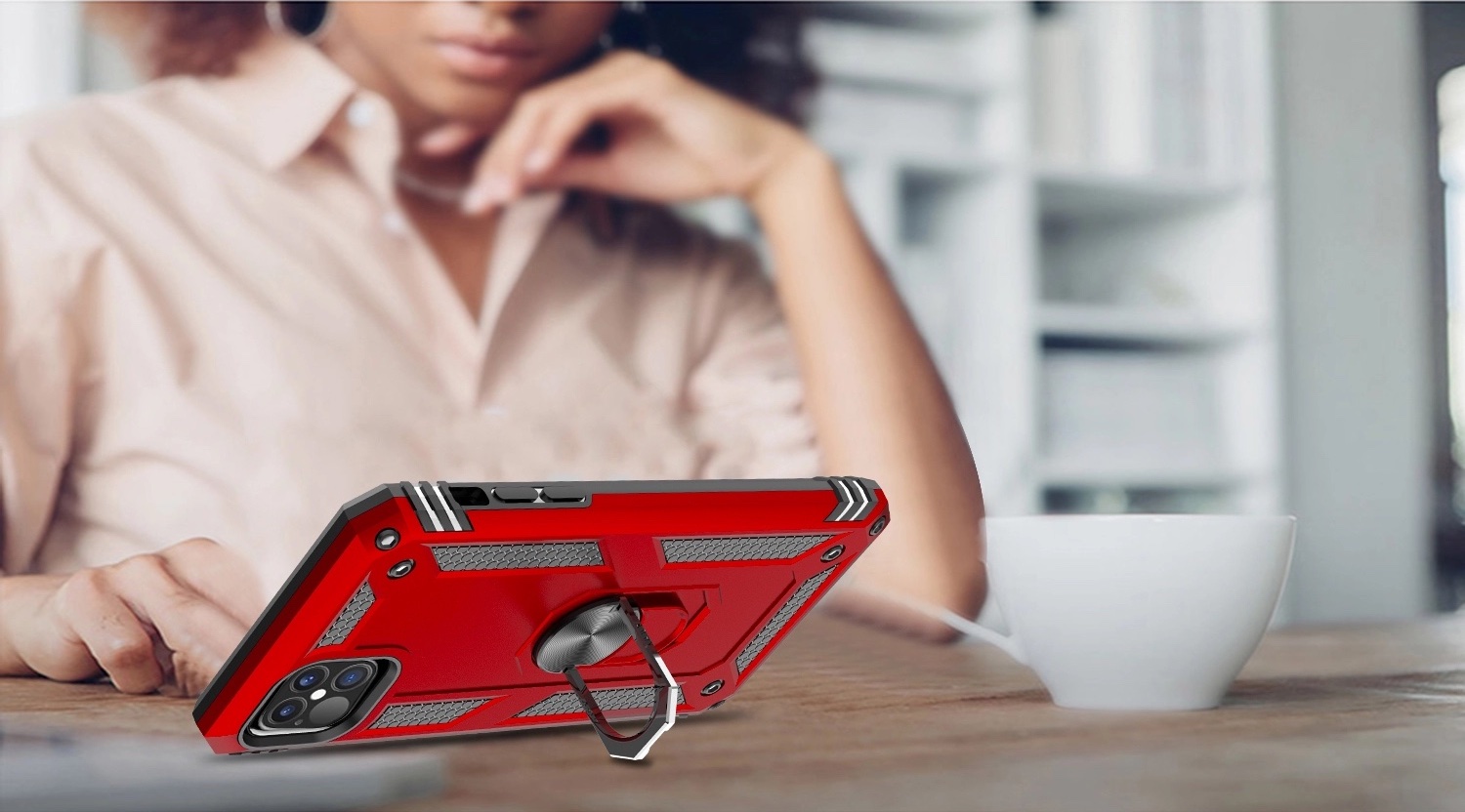 Obal na telefón, ktorý pozostáva z dvoch vrstiev a teda poskytuje vášmu telefónu maximálnu ochranu. Chráni telefón pred nárazom, poškriabaním a prachom. V zadnej časti je integrovaný držiak, ktorý zabraňuje vyšmyknutiu z ruky a zároveň je to aj stojan pri sledovaní fotiek alebo videa. Súčasťou je aj kovový krúžok pre uchytenie telefónu na magnetický držiak.